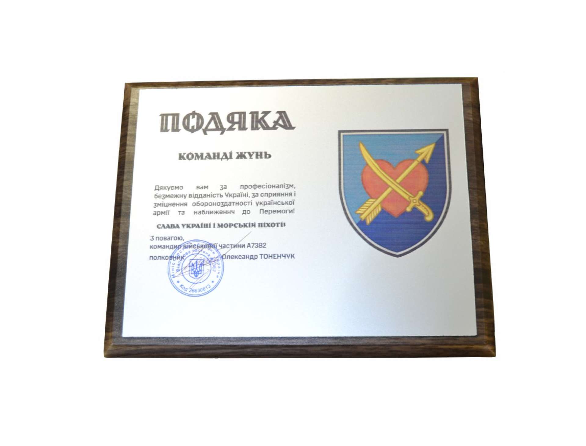 Благодарность А5 формат на золотистом или серебристом пластике с деревянной подкладкой.