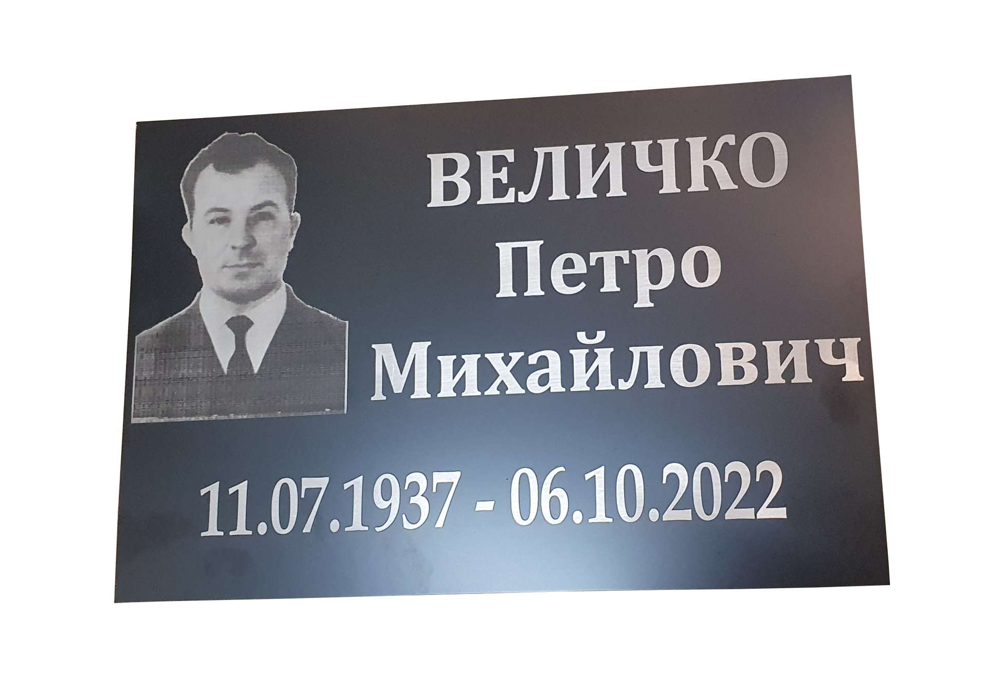 Ритуальная табличка с портретом из композита в Харькове. Изготовлена методом фрезерной обработки. Обладает очень длинными свойствами эксплуатации.