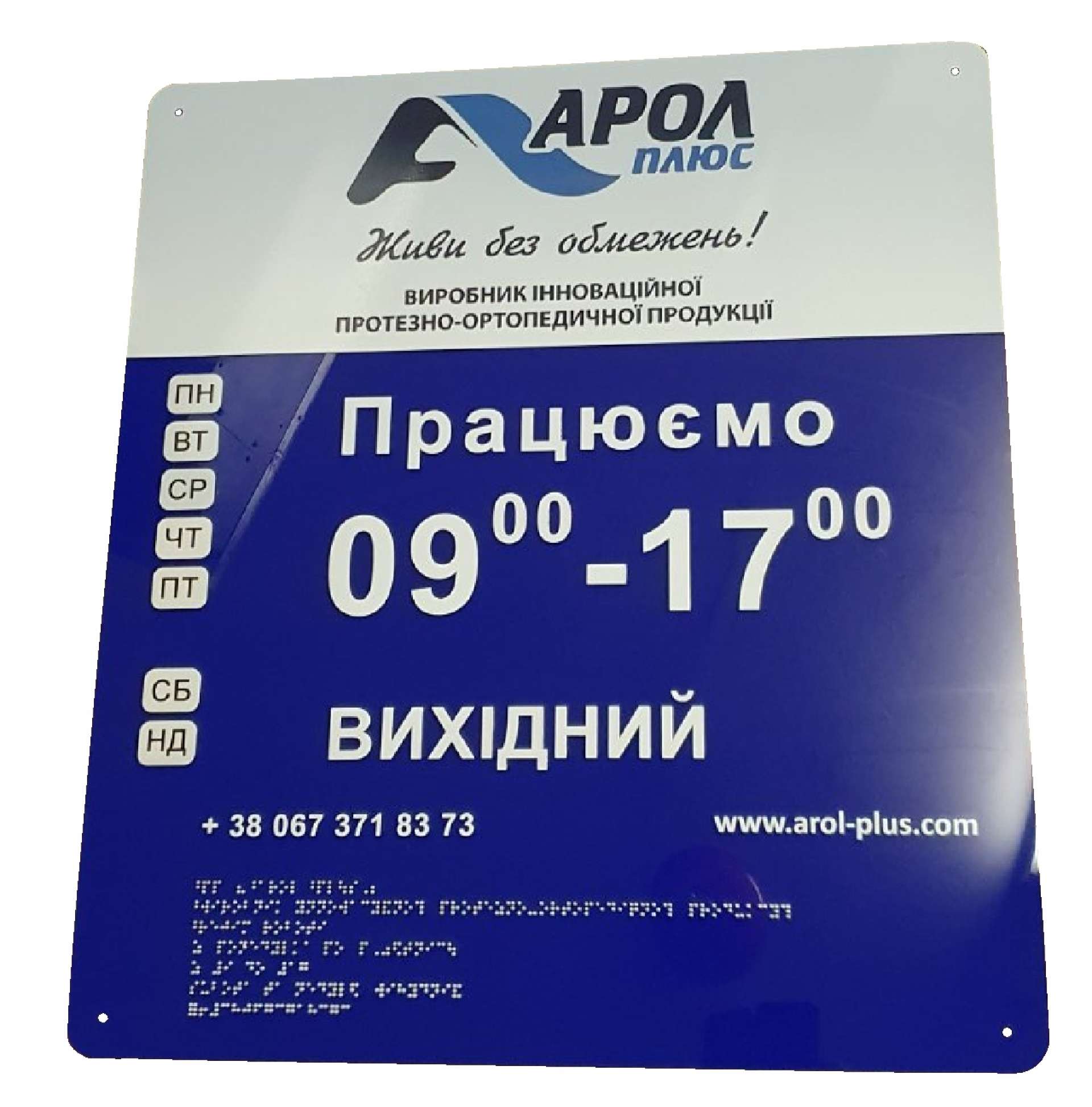 Вывеска со шрифтом Брайля 800х600