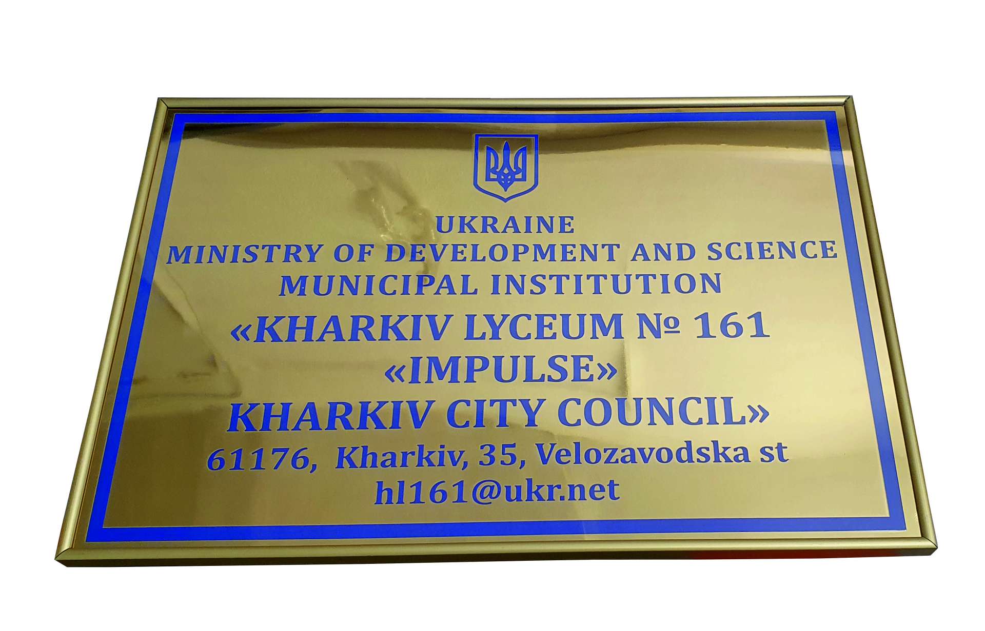 Вывеска из золотого пластика с защитным прозрачным стеклом в защитной золотистой алюминиевой рамке в Харькове. Изготавливаем любой размер вывески с индивидуальным просчетом.